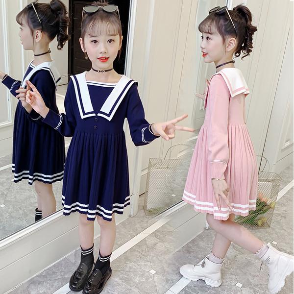 ニット ワンピース キッズ セーラー服 ニットワンピース 女の子 ワンピース Aライン セーラー風 フォーマルワンピース 長袖 子供服 子供ドレス 膝丈 キッズ Cl0579 ショップモモ 通販 Yahoo ショッピング
